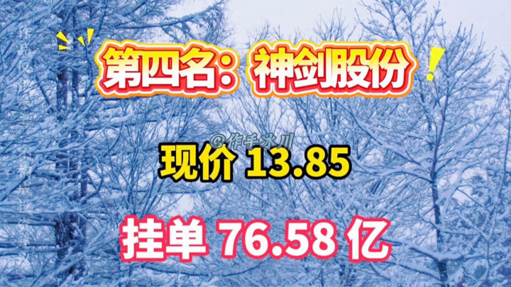 ·第四名:神剑股份,现价13.85,挂单76.58亿。